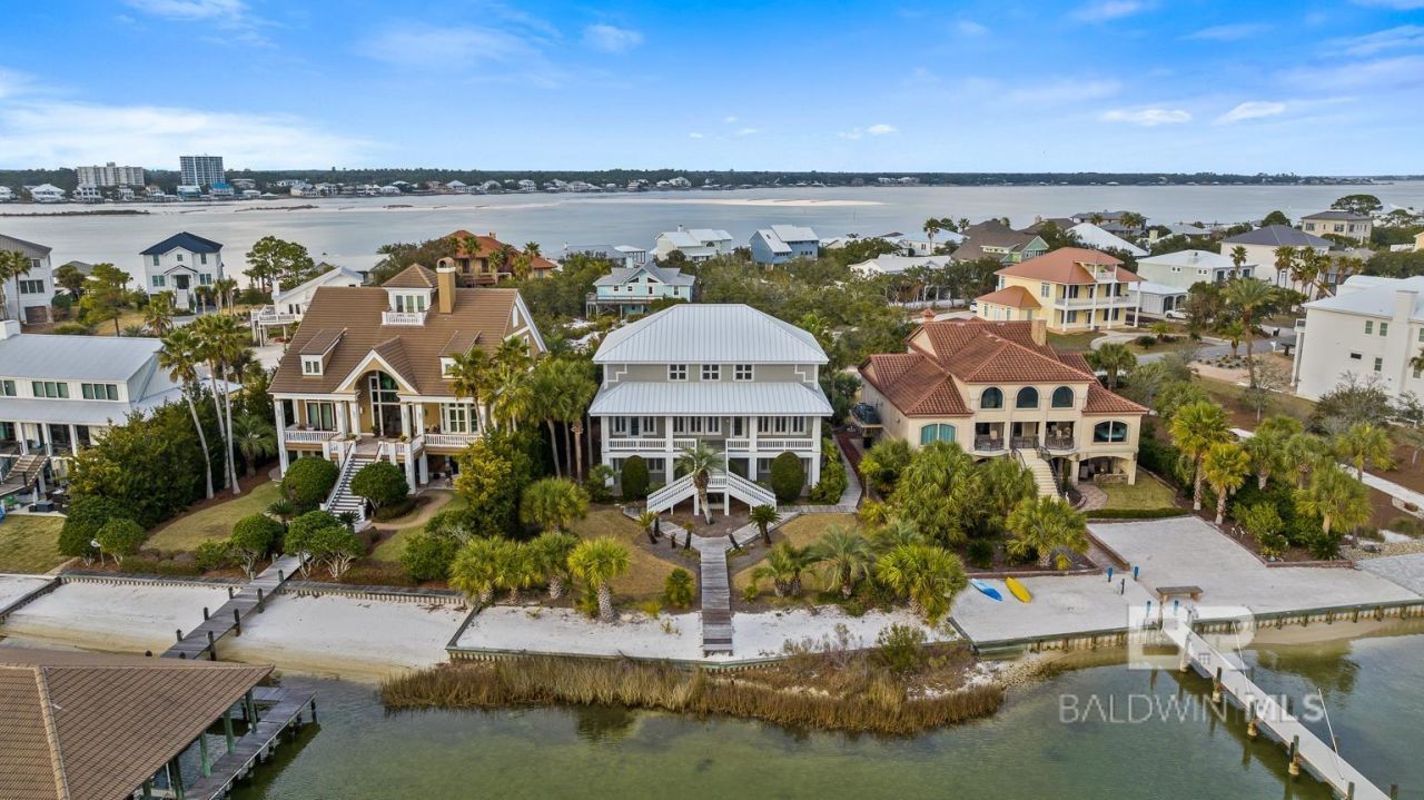 Welcome to beautiful & prestigious Ono Island! This beautiful home rests directly on Ole River with magnificent and unobstructed Gulf Views. The spacious and expansive back porch provides for excellent views of the river and gulf. This home is incredibly close to the main gated entry of Ono Island offering all of the security and amenities the island has to offer without excessive travel to your home. Ideal location!! The Ono bridge is just an eyeshot southeast. A boater's dream giving easy access to Ole River, the Gulf of Mexico and Cotton Bayou. Easy access out to the intracoastal canal. So many fun spots to shop, dine, and catch excellent music all by boat! The interior of the home boasts amazing natural light in each room. The spacious primary living space provides area for an informal & formal living room areas both with built in shelving. The home has a formal dining room off the kitchen with built in cabinets for entertaining guests or evening family meals. The kitchen has all stainless appliances. There is a breakfast bar in the kitchen for those quick meals on the go! Spacious kitchen perfect for the buyer with gourmet cuisine in mind. Two bedrooms and two full bathrooms upstairs. Downstairs you will find two double garages with plenty of storage space. In addition there is a downstairs recreation room and full bedroom with a shared full bathroom! There is an exterior built in storage room on the west side of the home for beach toys and patio furniture. The home is protected by a full set of installed rolling storm shutters. The home is protected by a current termite bond. Available community amenities including a huge pool, fitness center, and a hot tub. Boat launch, tennis/pickleball, playground, and green space access included in HOA dues. If you love the Ole River location this home is a must see! Exceptionally well built home! Buyer to verify all information during due diligence.