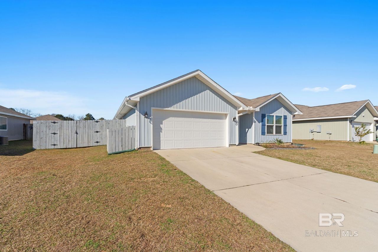 Welcome to this beautifully maintained home located in a quiet, convenient Greystone Village neighborhood just minutes from shopping, dining, schools, and the Gulf Coast's stunning beaches. This inviting property offers a functional open-concept layout with spacious living areas, perfect for both everyday living and entertaining. All bedrooms consist of brand new carpet and the entire house has been freshly painted. The kitchen features ample cabinet space and a comfortable flow into the dining and living areas, making it easy to host family and friends. The primary suite provides a relaxing retreat with generous closet space and a private bath, while additional bedrooms are well-sized and versatile for guests, home office, or hobbies. Enjoy outdoor living with a backyard ideal for grilling, pets, or simply unwinding after a long day while having an expanded concrete slab in the backyard yard. Whether you're looking for a primary residence, second home, or investment opportunity, this home offers comfort, convenience, and value in one of Baldwin County's most desirable locations. Don't miss your chance to own a home close to everything Foley has to offer ? beaches, entertainment, and everyday essentials are all just a short drive away. BUYER TO VERIFY ALL INFORMATION TO BE CORRECT. Buyer to verify all information during due diligence.