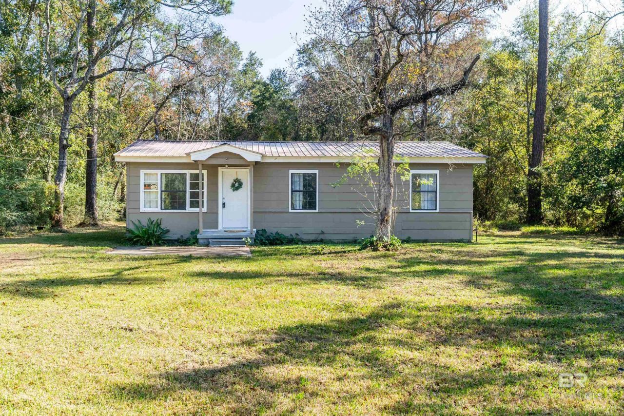 Looking for a move-in ready home your wallet will like? Welcome Home to this charming cottage located only minutes from Mobile Bay! This home is situated in an USDA eligible area- meaning zero downpayment if you are deemed eligible. Home offers refreshing, updated interior paint plus vinyl flooring throughout, 3 bedrooms with a flex room which could be converted to a 4th bedroom, office or bonus room and 2 full bathrooms with an updated vanity. Upon entry, you are greeted with natural light which carries throughout and makes you feel right at home. Each bedroom has generous closet space for storage needs plus your primary room offers built in shelving for added decor. Home is complete with a metal roof which makes those rainy days a little easier to handle! Updated condenser installed to feature a full heating and cooling central HVAC system for an added peace of mind on those warm summer days and cool Alabama winter nights. This home has great rent potential for an investor or the ability to find a home at an affordable price! Walk outside and enjoy your level, half an acre lot for all the play, bonfires, hobbies or peace you desire. There is ability to add a workshop, pole barn or large shed for extra storage. The options are endless and able to be dreamed up with this home! Call today to schedule your showing or for more information. Welcome Home! Buyer and/or buyers agent to verify all information. Buyer to verify all information during due diligence.