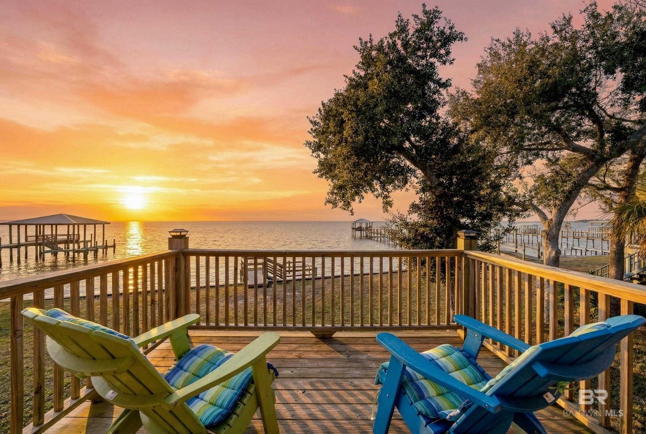 This beautiful newly renovated waterfront cottage offers 75 feet of water frontage, a private pier, and unforgettable sunset views. Located on the east side of Mobile Bay within the private and quiet community of Sunset Shores, this thoughtfully updated 2 Bed, 2 Bath home is move-in-ready and designed for relaxed coastal living. The open living area features a stunning new beadboard accent wall with a gas fireplace, creating a warm and inviting focal point. The kitchen has been completely refreshed with all new stainless steel appliances, including a brand new dishwasher, granite countertops, and modern fixtures ? perfect for entertaining or everyday living. The home features two true primary suites, each with its own private bathroom boasting granite countertops, updated finishes, and direct access to the expansive back porch. The living room also opens to the partially screened porch, which spans the entire length of the home, ideal for enjoying bay breezes and panoramic water views. Recent improvements include the addition of brand new flooring, furnishings, outdoor furniture, and a gas fire pit, as well as a newly constructed seawall and pier, adding both style and peace of mind. The private pier provides easy water access for fishing, kayaking, and boating to Fort Morgan, Dauphin Island, and beyond, or simply enjoying sunsets over the water. The downstairs area offers versatility with ample covered parking, a screened area, additional storage, and a bathroom, plus the potential for development of a guest suite, hobby room, or additional living area. This fully renovated waterfront retreat offers comfort, charm, and flexibility ? ideal as a primary residence, second home, or investment property. This is a rare opportunity to own a turnkey home with direct water frontage, private pier, and expansive outdoor living spaces. Buyer to verify all information during due diligence. Buyer to verify all information during due diligence.